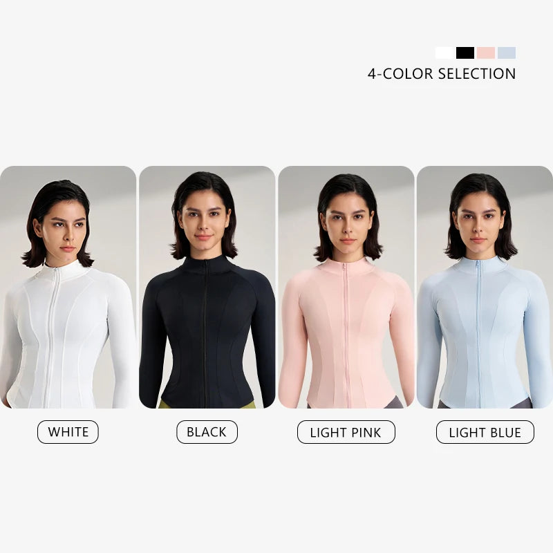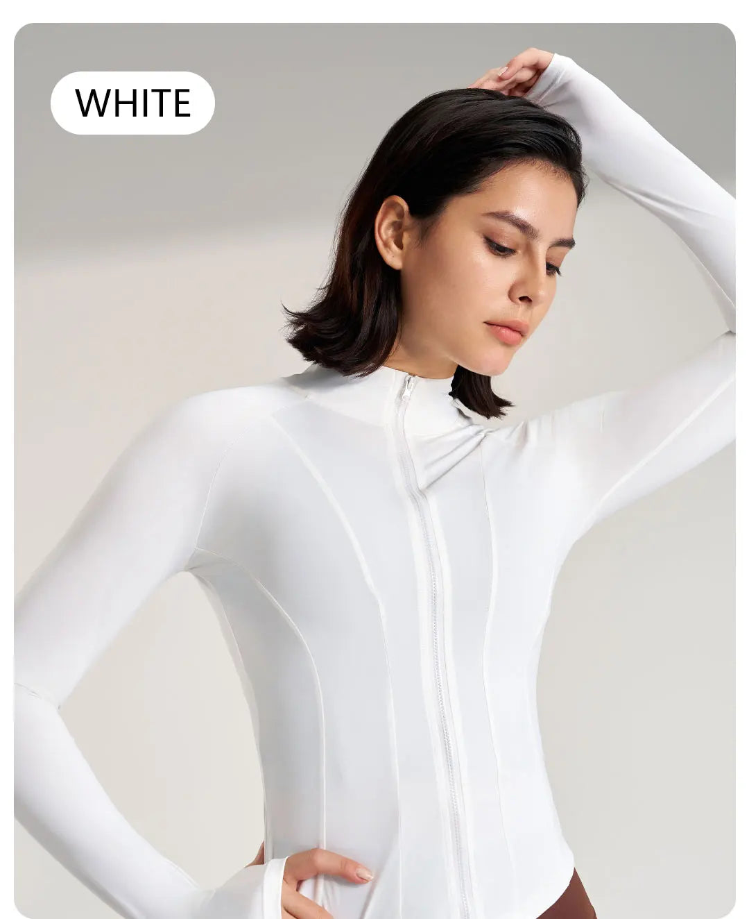 Meet your new workout bestie! Our Form Fitted Jacket combines style with serious comfort. Designed with a sleek, body-hugging cut, this long-sleeved wonder features a cozy high neck collar and handy thumbholes to keep you warm and secure. Whether you're hitting the gym, going for a run, or just living your best active life, this jacket delivers the perfect blend of performance and polish.