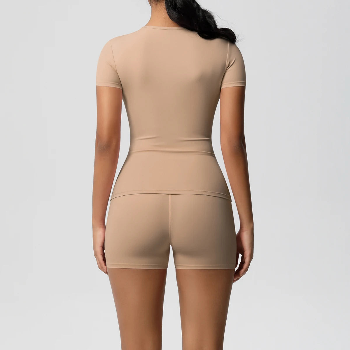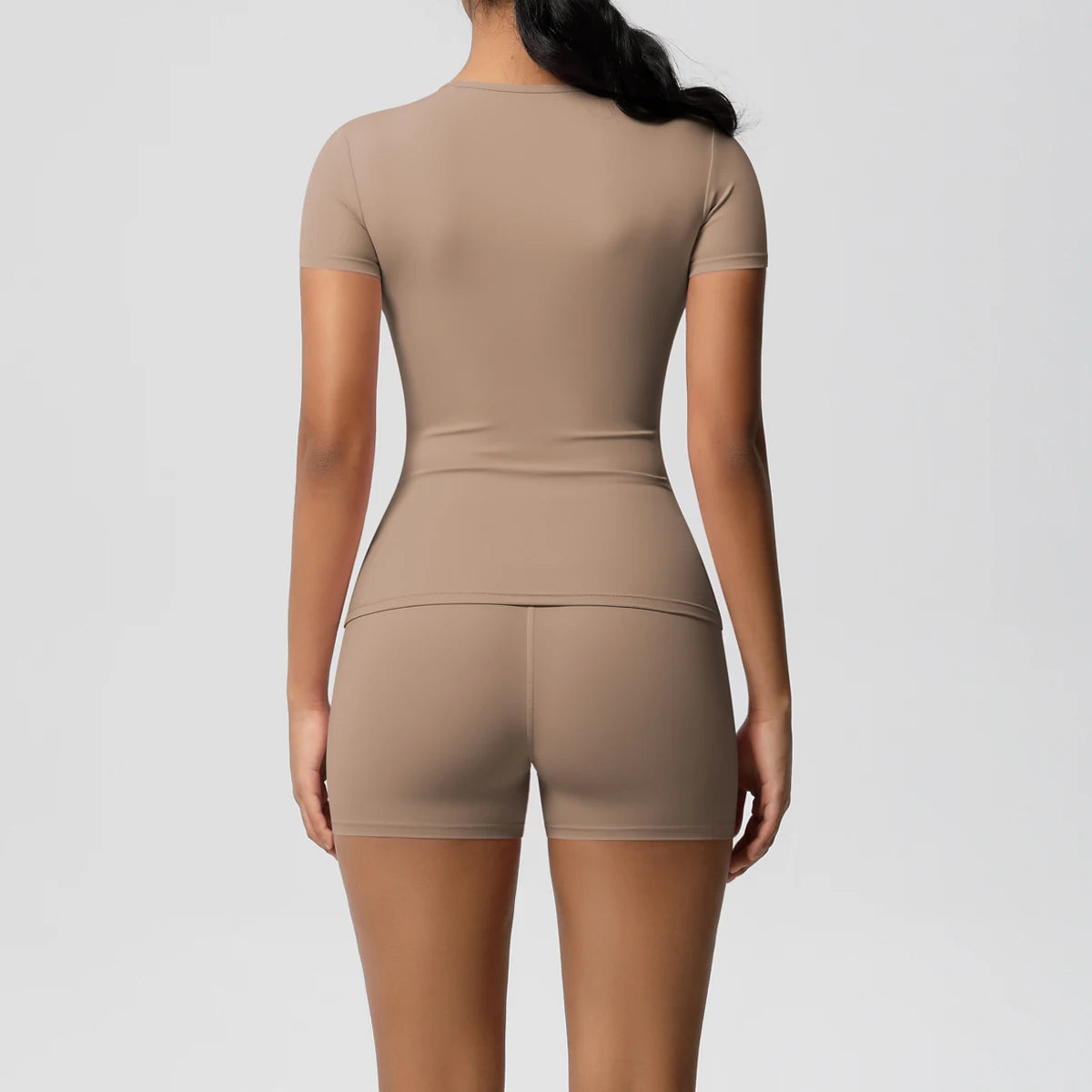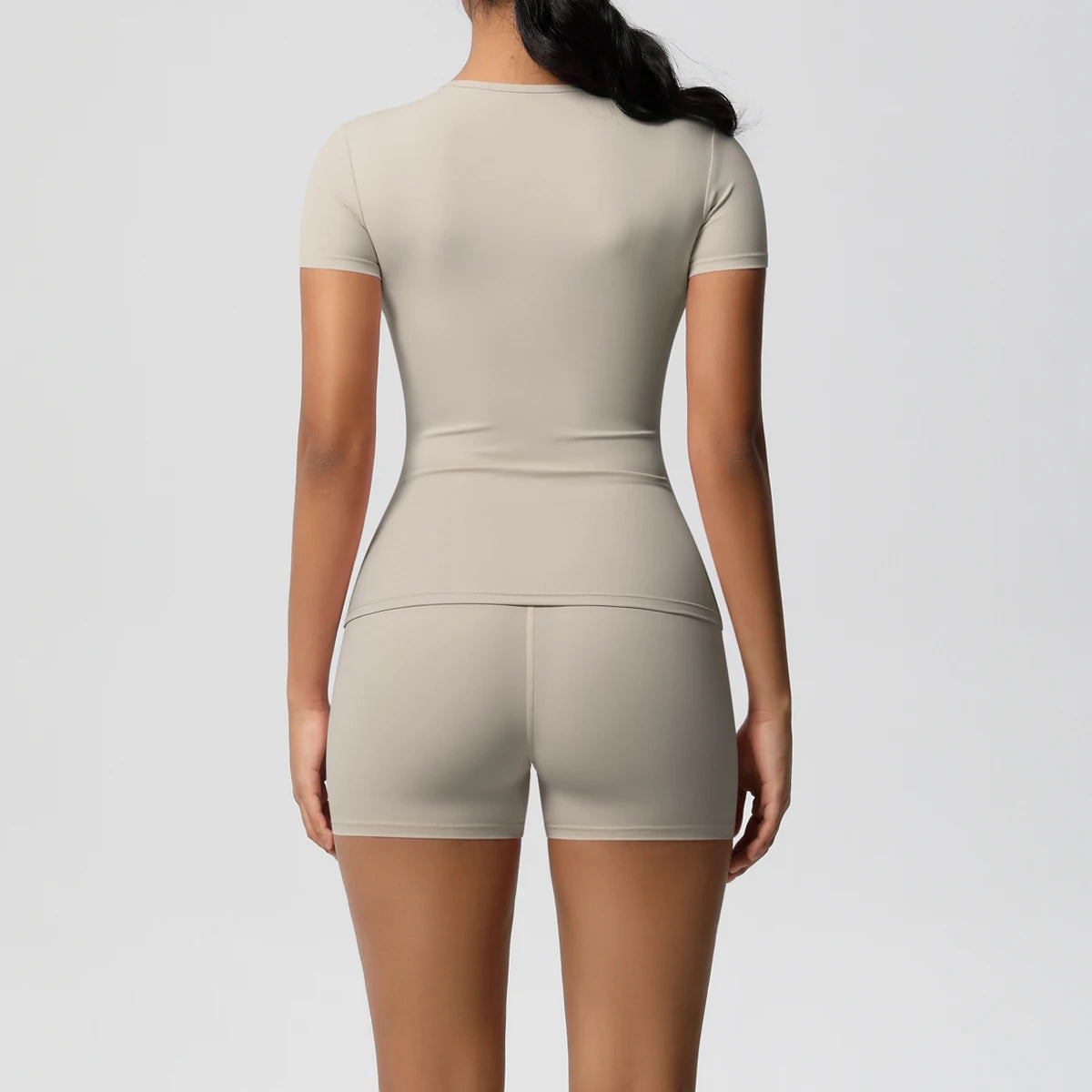 The Core Set pairs a fitted short-sleeve top with high-rise compression shorts for a streamlined, performance-ready silhouette. Crafted in a soft, flexible stretch fabric, it contours naturally while maintaining breathable comfort through every session.