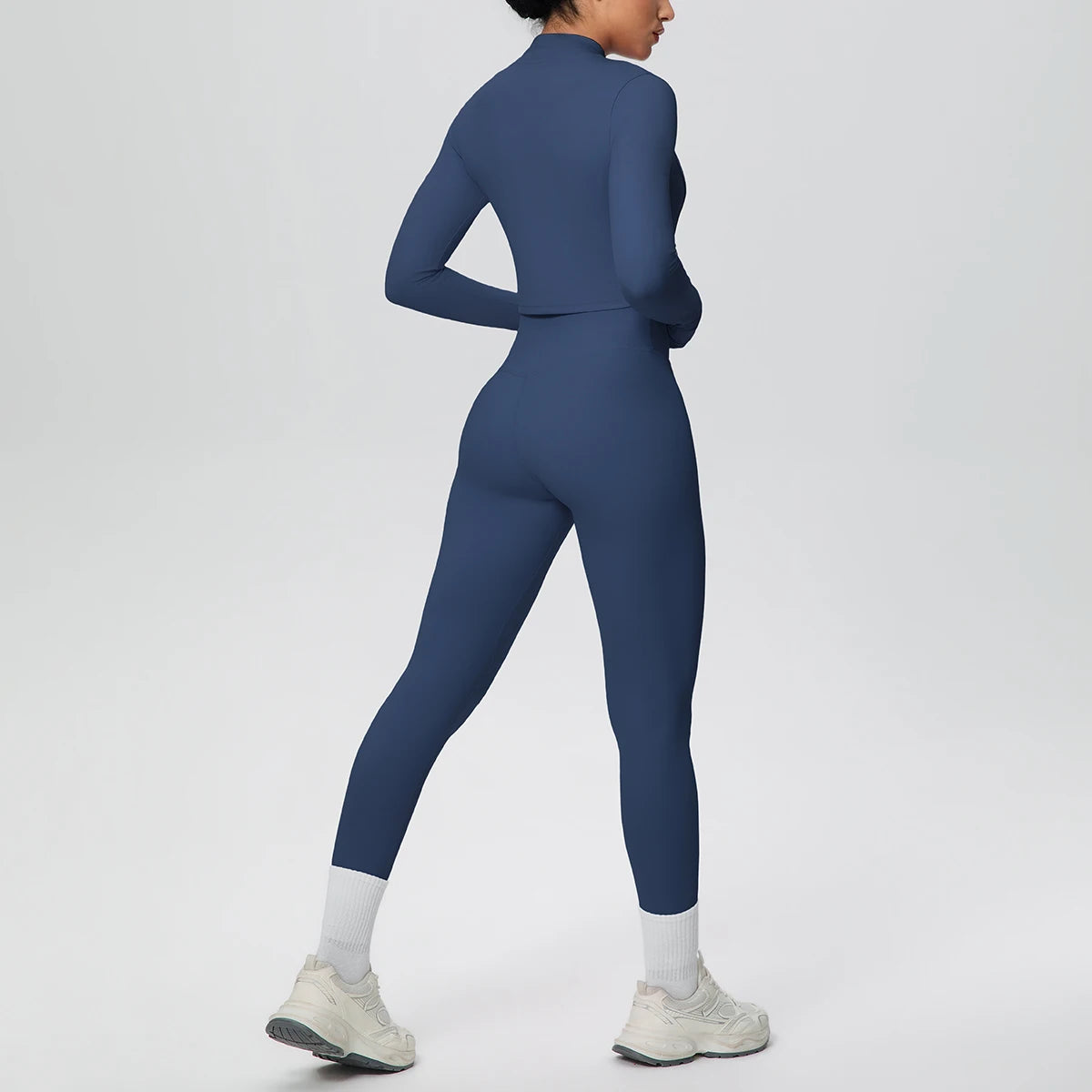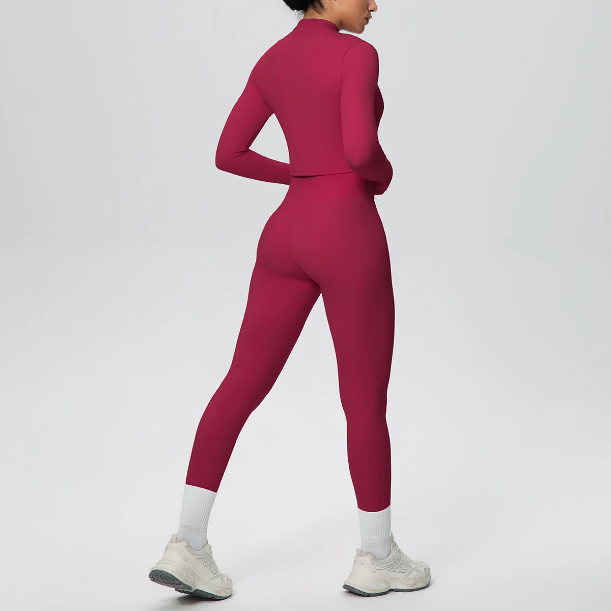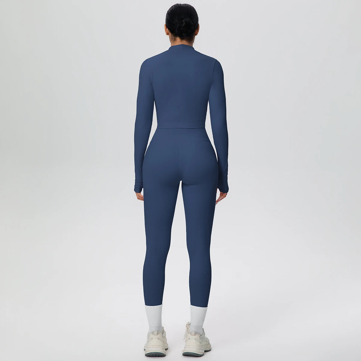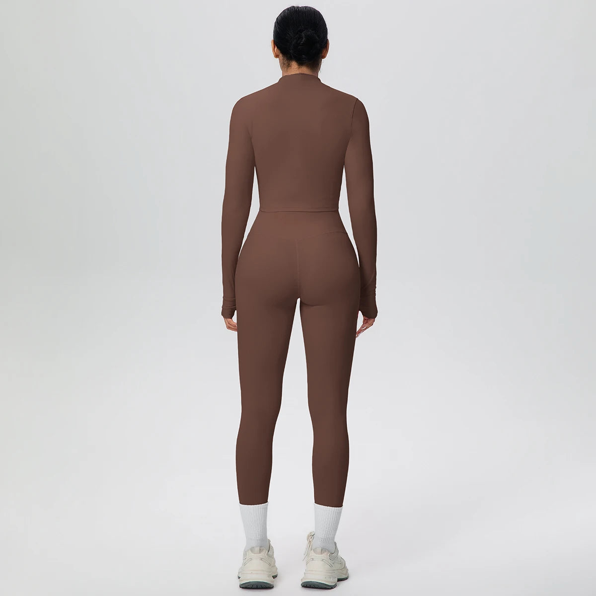 Get ready to flow through your workout in style with this complete three-piece yoga set. The padded sports bra top provides comfortable support, while the long sleeve crop jacket with thumbholes keeps you cozy during cooler sessions. Finish the look with four-way stretch ankle leggings that move with every pose. Whether you're hitting the mat or heading to brunch after class, this versatile set has you covered from top to bottom.